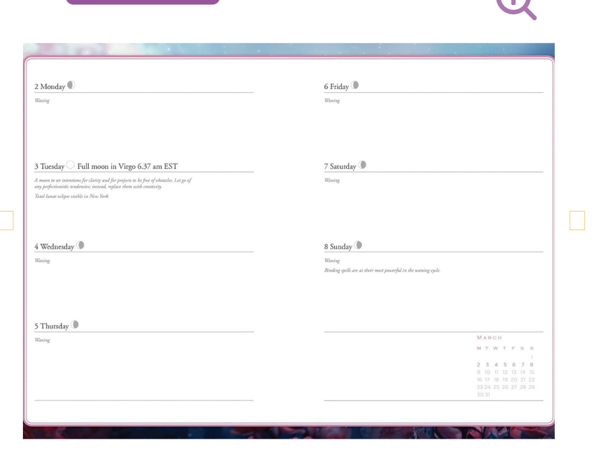 This diary empowers you to be at your best all year round. Inside it you will find seasonal and lunar timings and their impacts and clear explanations of the cyclic energies of the earth to help you get the most out of your 365 days around the sun. Deepen your spiritual connection, improve your health and vitality and enjoy the pleasures of casting real magic with the moon, the tides, the earth and the seasons.