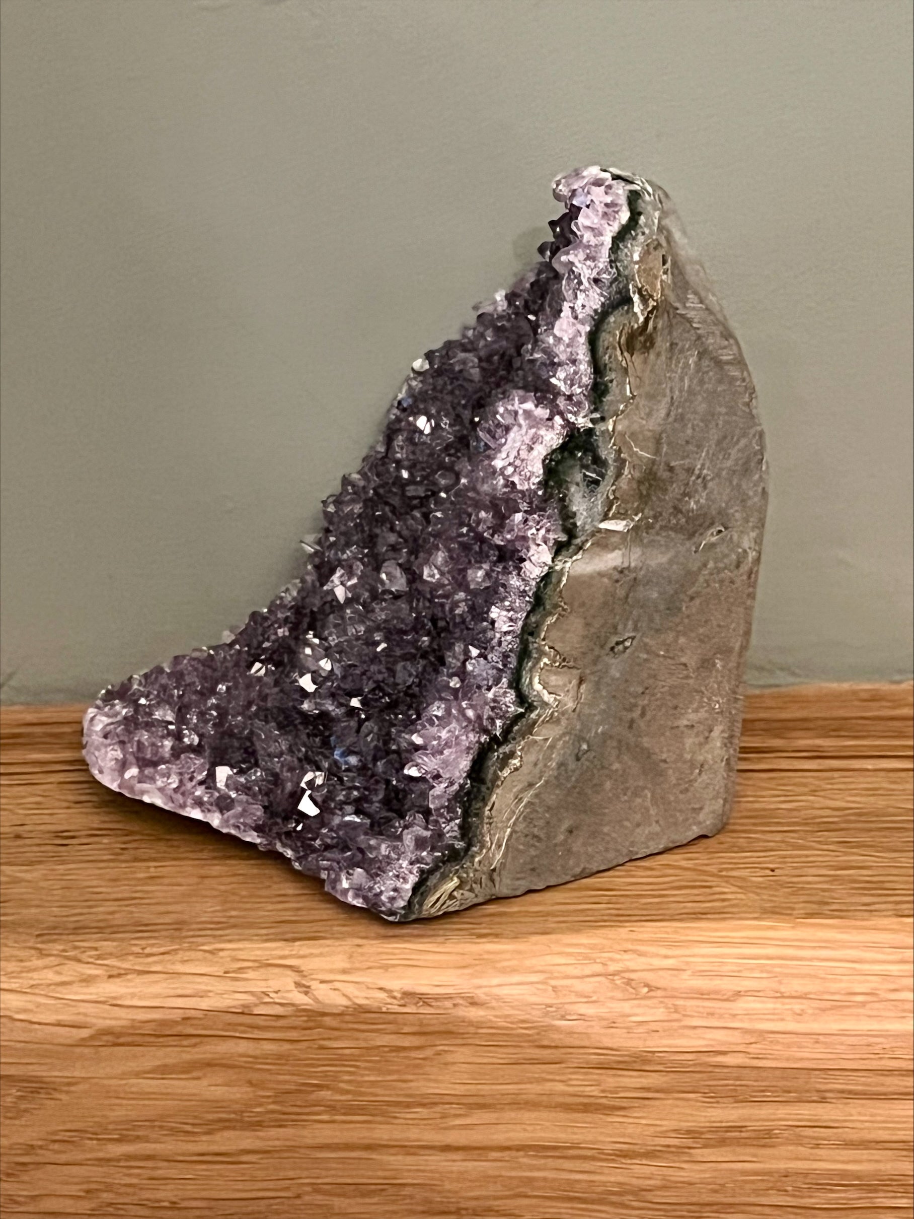 Amethyst helps in promoting good health on all fronts - physical, mental and spiritual. Physically, amethyst is known to bolster the immune system, reduce tension and headaches, and promote restful sleep. Mentally, its effects include alleviating worries and fears, encouraging clear thinking, and trusting one's intuition. Approximately 255g