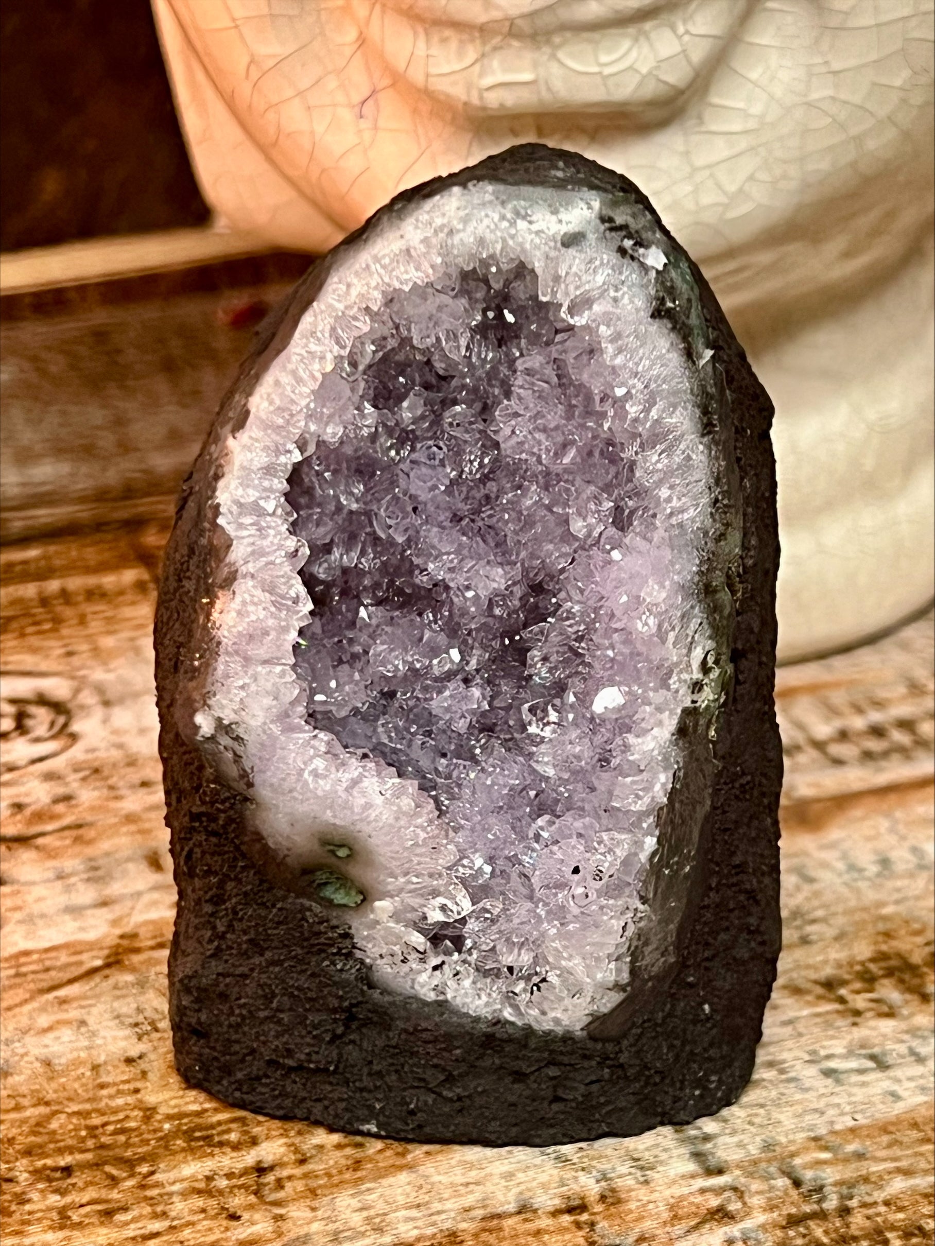As a captivating purple variety of quartz, amethyst holds a special place among gemstones. Amethyst is believed to bring peace, intuition, and spiritual growth into your life. Its calming properties make it a popular choice for those looking to enhance their mental clarity and emotional balance. It is considered a powerful stone for spiritual protection and purification. It is believed to enhance intuition, spiritual awareness, and psychic abilities, making it a favourite among those who practice meditation and seek deeper spiritual understanding. Approximately 10cm by 7cm with an approximate weight 489g