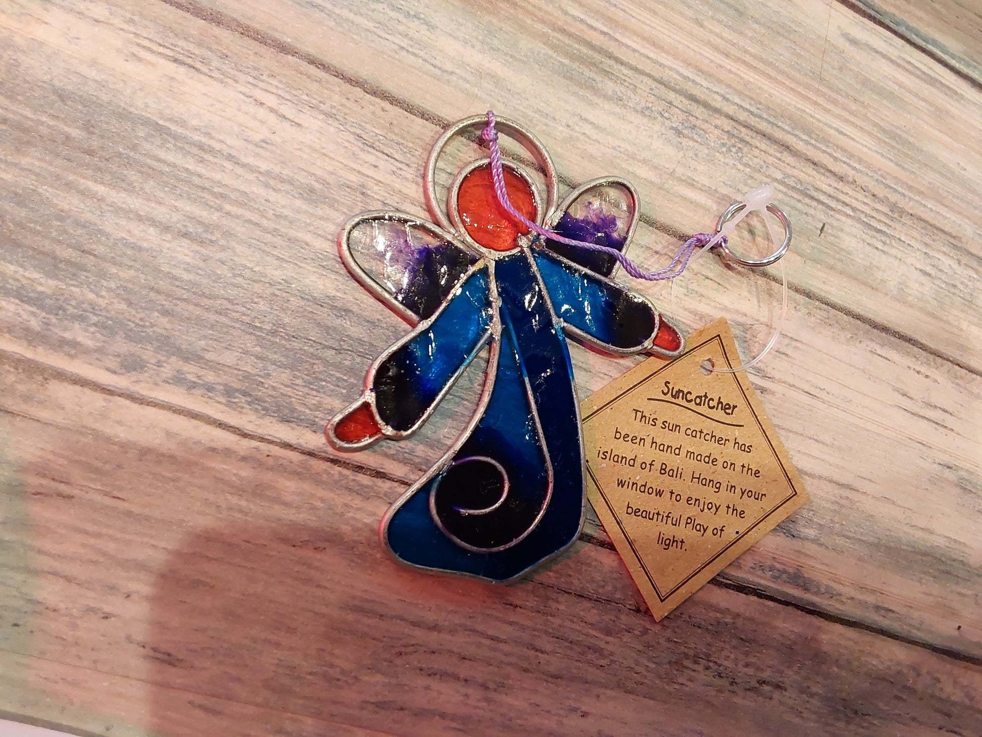 This suncatcher has been made on the island of Bali. Hang in your window to enjoy the beautiful play of light. 7.5cm in length.