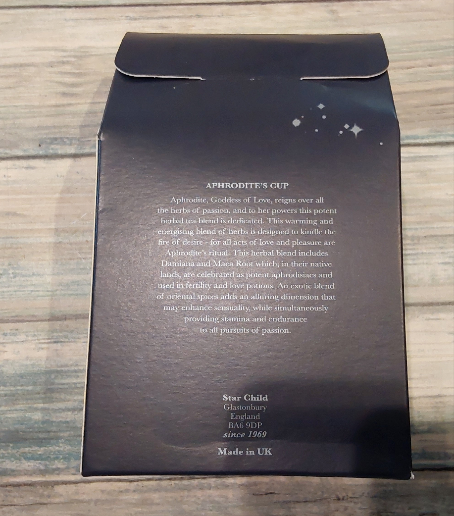 Damiana, Rose Petals, Rosemary, Thyme, Mint, Ginger, Ginseng, Violet Leaves, Blue Malva Flowers, Maca Root, Star Anise.