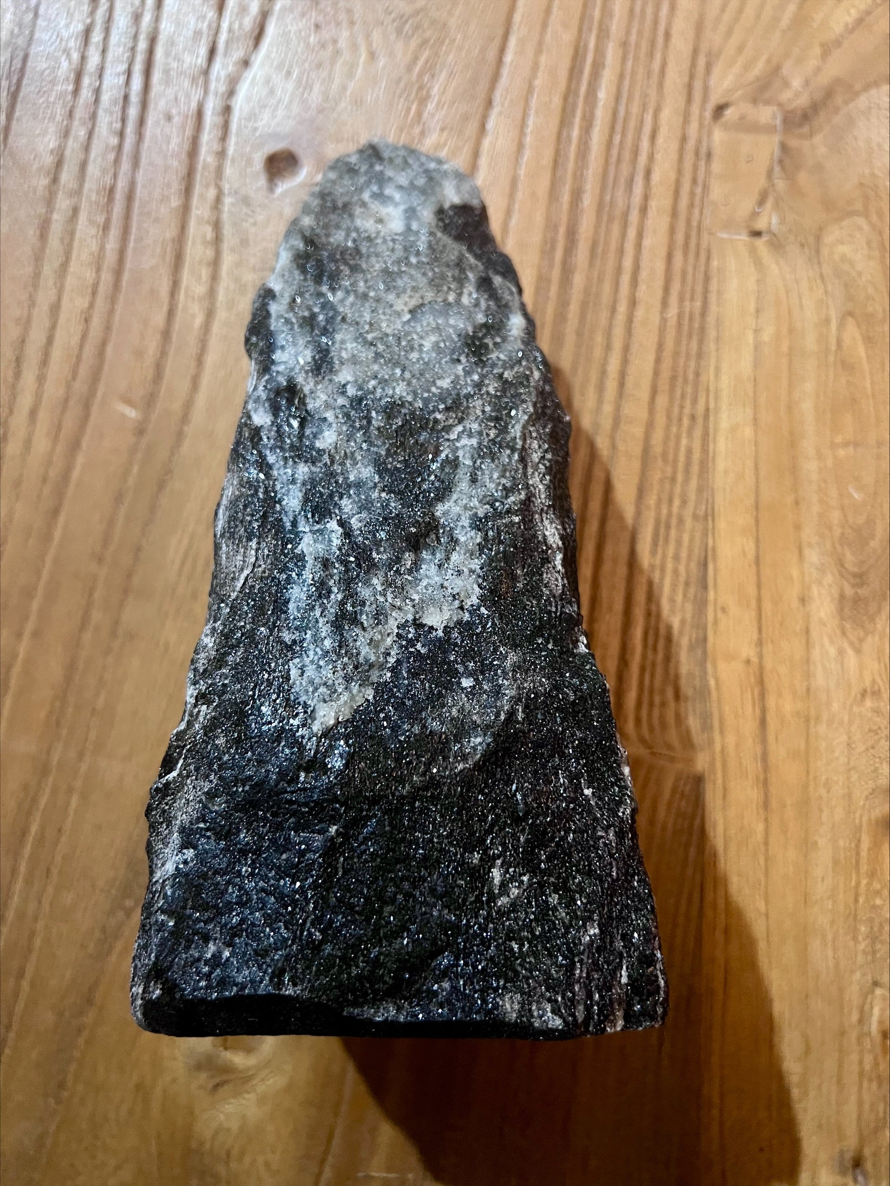 Black mica (Biotite) is spiritually known for powerful grounding, protection, and reflection, grounding you to Earth's energy, shielding against negativity, and promoting self-awareness by revealing flaws without judgment, all while enhancing spiritual insight and clarity, especially connected to the Root Chakra. It absorbs negative energy, helps release emotional blockages, and supports personal growth by connecting you to your inner self and higher consciousness, acting as a protective shield for mental and emotional stability. Measures height 17cm, 10cm, depth 6cm. Weight 1578g