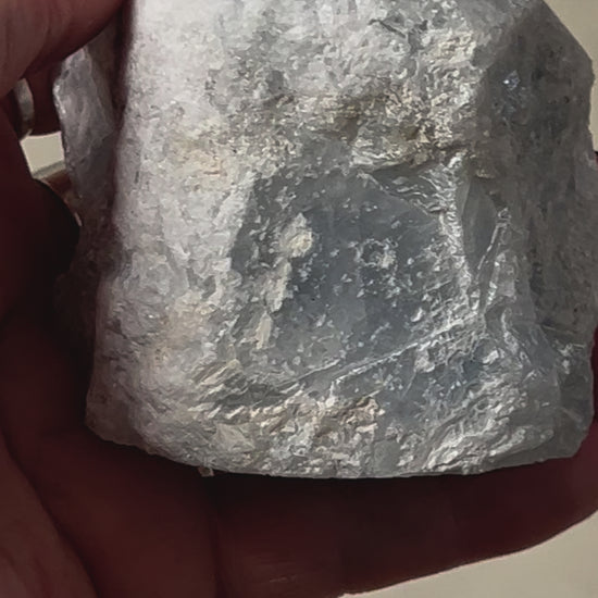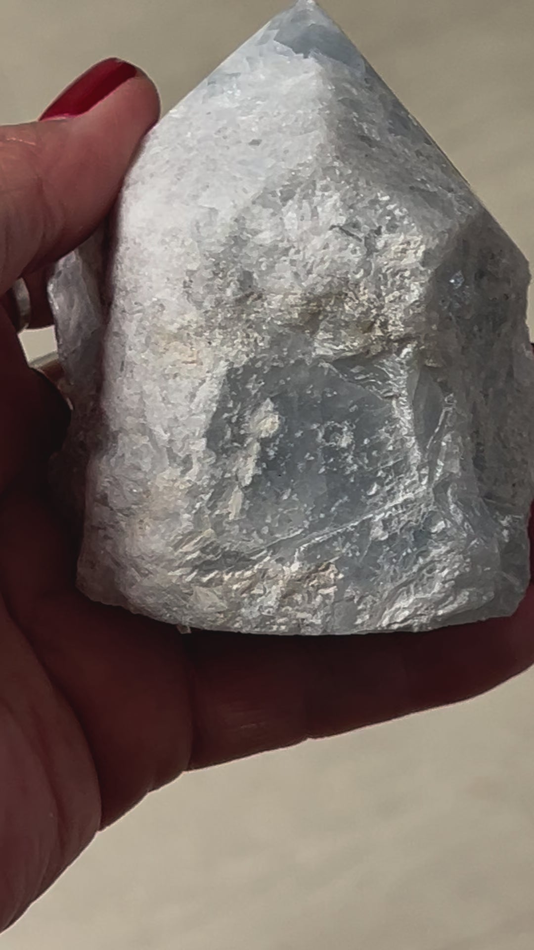 Blue Calcite is a very powerful stone when it comes to soothing and relaxing the emotional body. This stone is known to calm emotions and offers mental and etheric protection. Blue Calcite is very protective when it comes to one's aura, and offers very strong transmutational energies. Approximately 8cm height, 6cm wide, 5cm depth, 262g