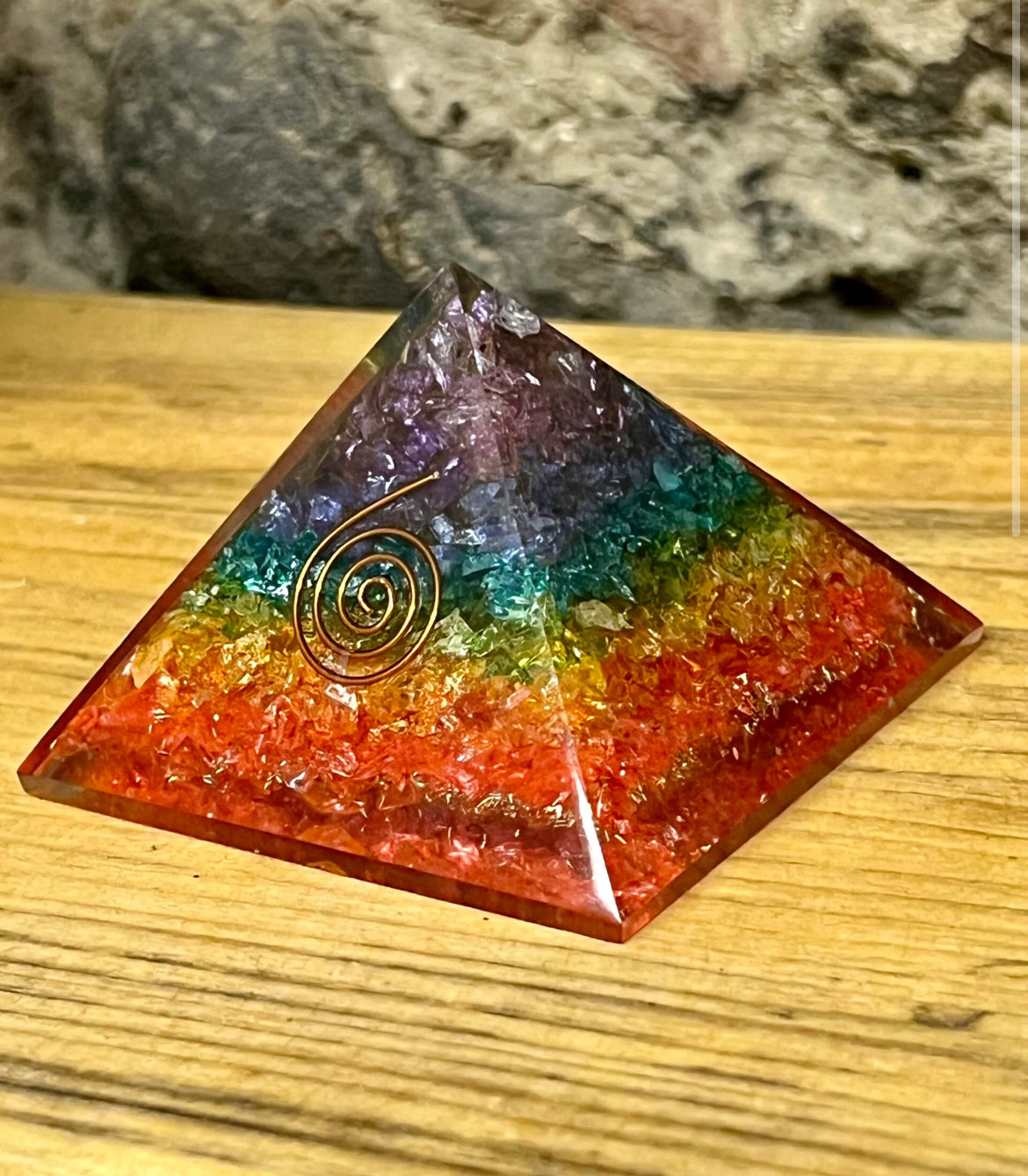 The Orgonite pyramid is a combination of metal shaving, resin, and Amethyst gemstones. It balances the electromagnetic fields, attracts Orgone energy, improves self-confidence, and curbs negative energy around you in the room. Positive energy can improve your motivation, sleep, focus, and overall health.