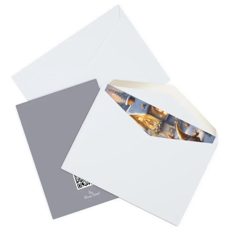 Feel the joy of the festive period with this beautiful card, share the celebrations with the Gnomes. Measures approximately 21cm by 15cm complete with envelope