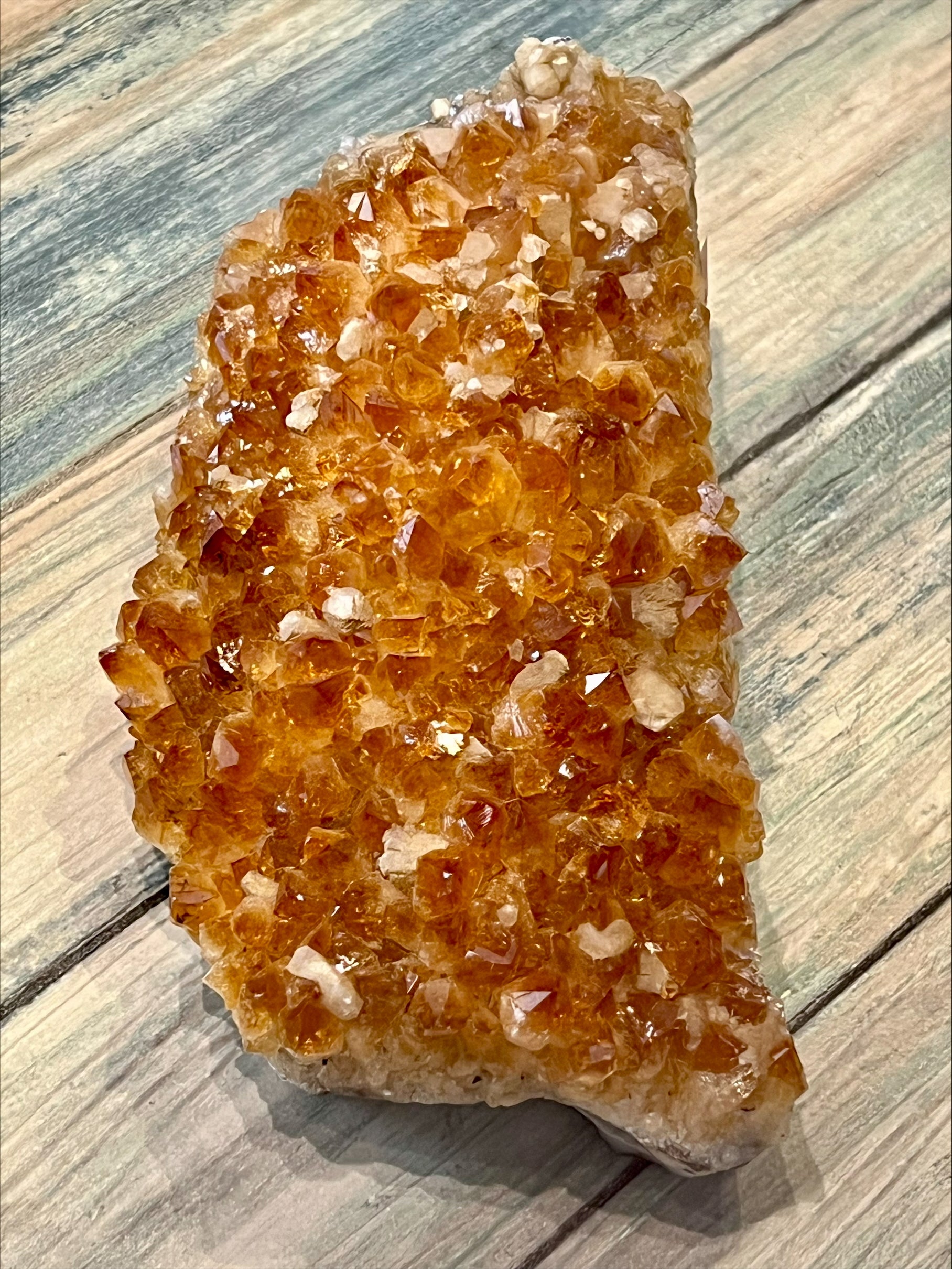 Often associated with abundance, prosperity, and success, Citrine has been called the “Merchant's Stone” due to its believed ability to bring fortune to business and trades. This connection to wealth and success has been treasured throughout history, making Citrine a powerful symbol of abundance and positivity. 569g and measures 14cm by 7cm by 3cm
