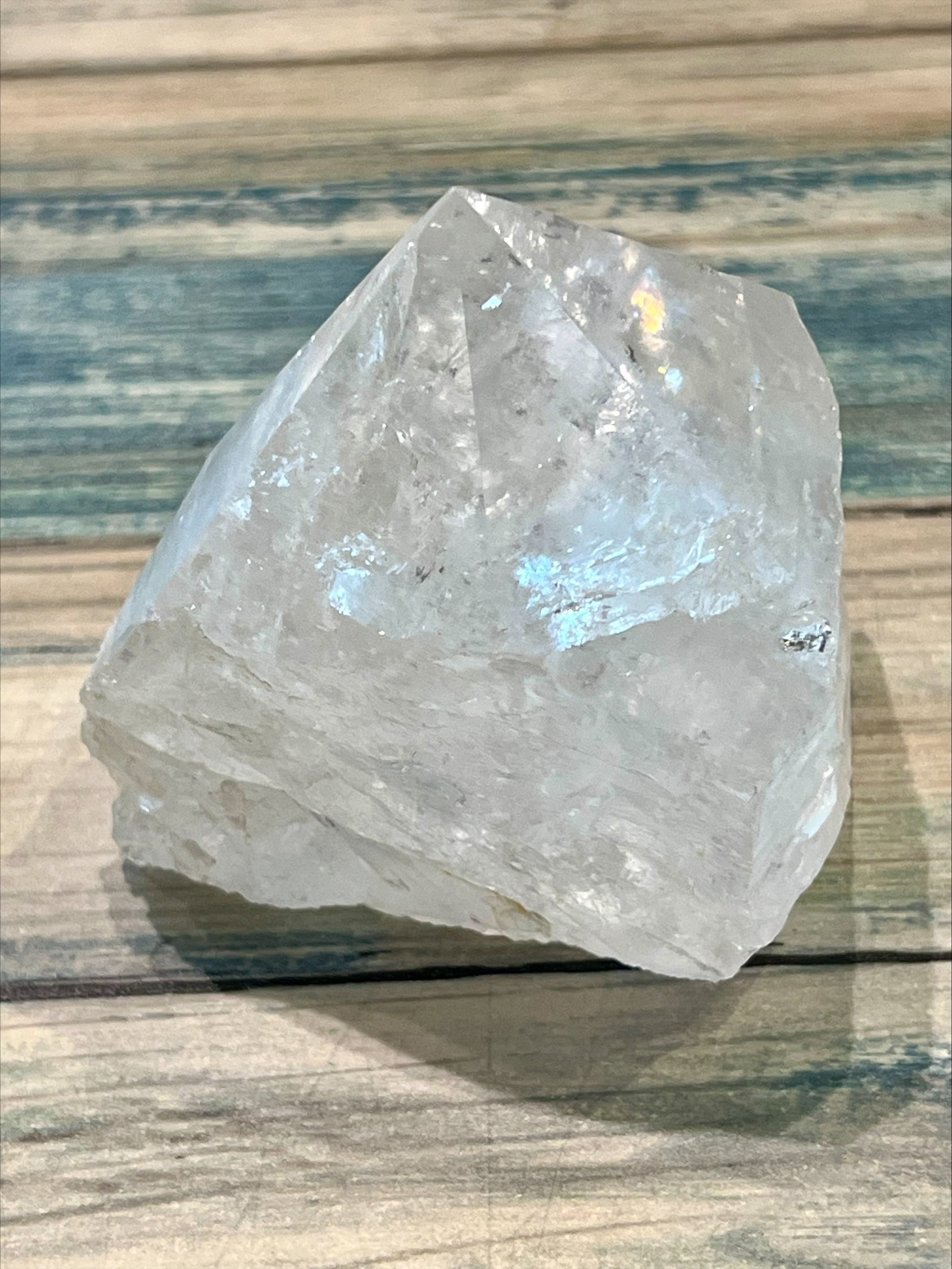 Clear Quartz will only enhance positive energy, leaving negativity behind. Channelling specific energy during meditation will send it out into your space, leaving you surrounded with blissfulness and filtering out distractions. At a spiritual level, Clear Quartz raises energy to the highest possible level. 251g and approximately 7cm height and base 6cm by 4cm