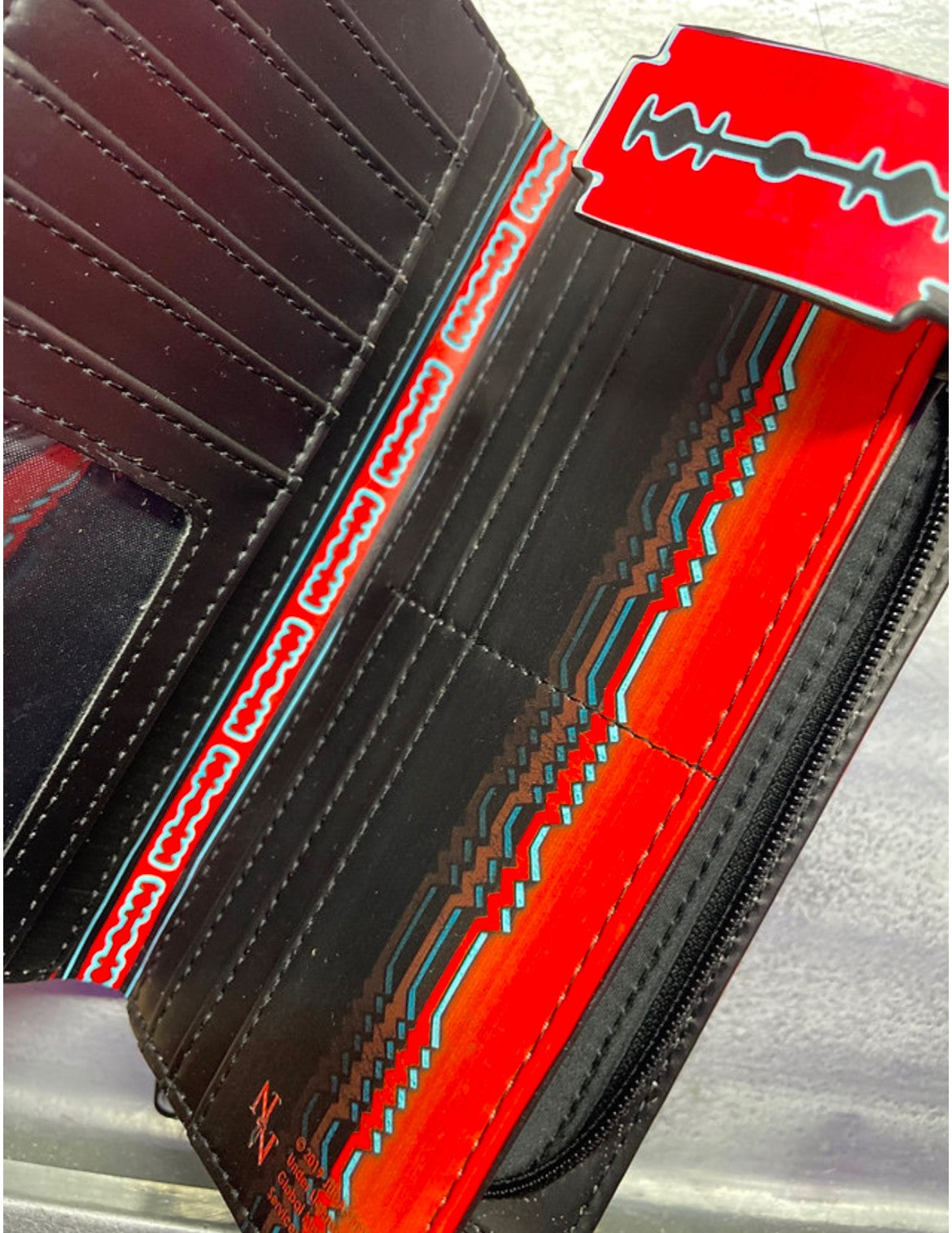 Honour the distinctive sound of English Metal Gods Judas Priest, with this officially licensed Purse. Featuring the artwork from their sixth (and most popular) studio album, it depicts a hand fearlessly grasping a large razorblade, emblazoned with the words “Judas Priest” and “British Steel”. Both stylish and practical, this Wallet has multiple slots for cards and a separate zip compartment for storing coins. Perfect for keeping your cash safe while you rock out to the roots of British Heavy Metal!