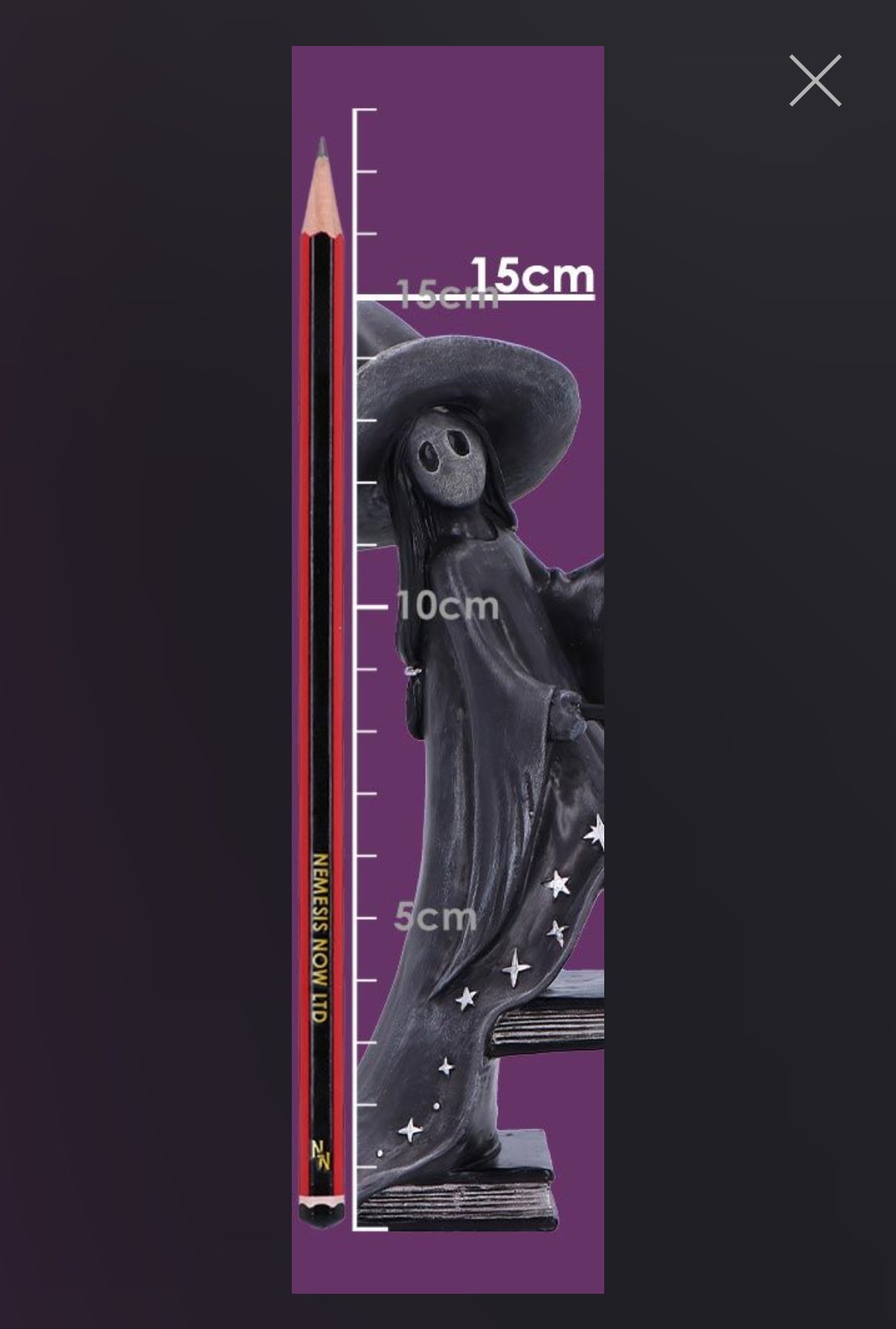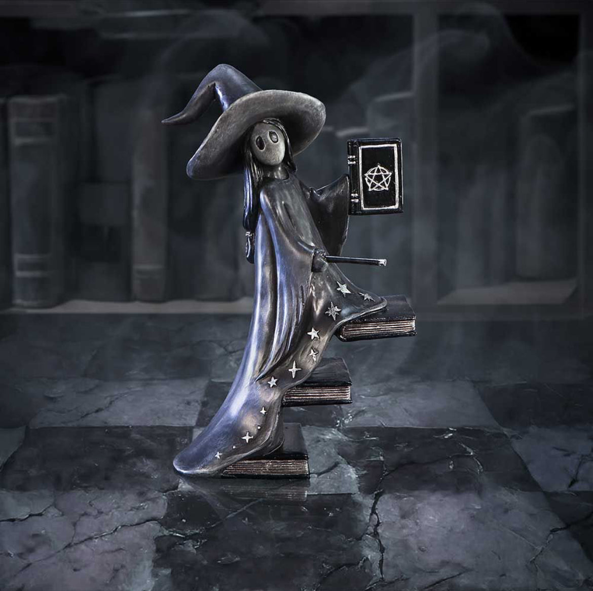 Discover Luna, a mesmerizing figurine from Nemesis Now's Little Souls range, where fantasy meets fine artistry. This enchanting black witch soul is captured in intricate detail, ascending a floating staircase crafted from spellbooks, all cast in the highest quality resin. Each piece is hand-painted with meticulous care, ensuring a truly unique charm. Encased in a beautifully branded Nemesis Now Little Souls gift box, Luna is an ideal present for yourself or any witch-loving friend. Her bewitching presence is perfect for adding a touch of eccentric magic to any room, delighting fans of Harry Potter and other fantastical realms alike.