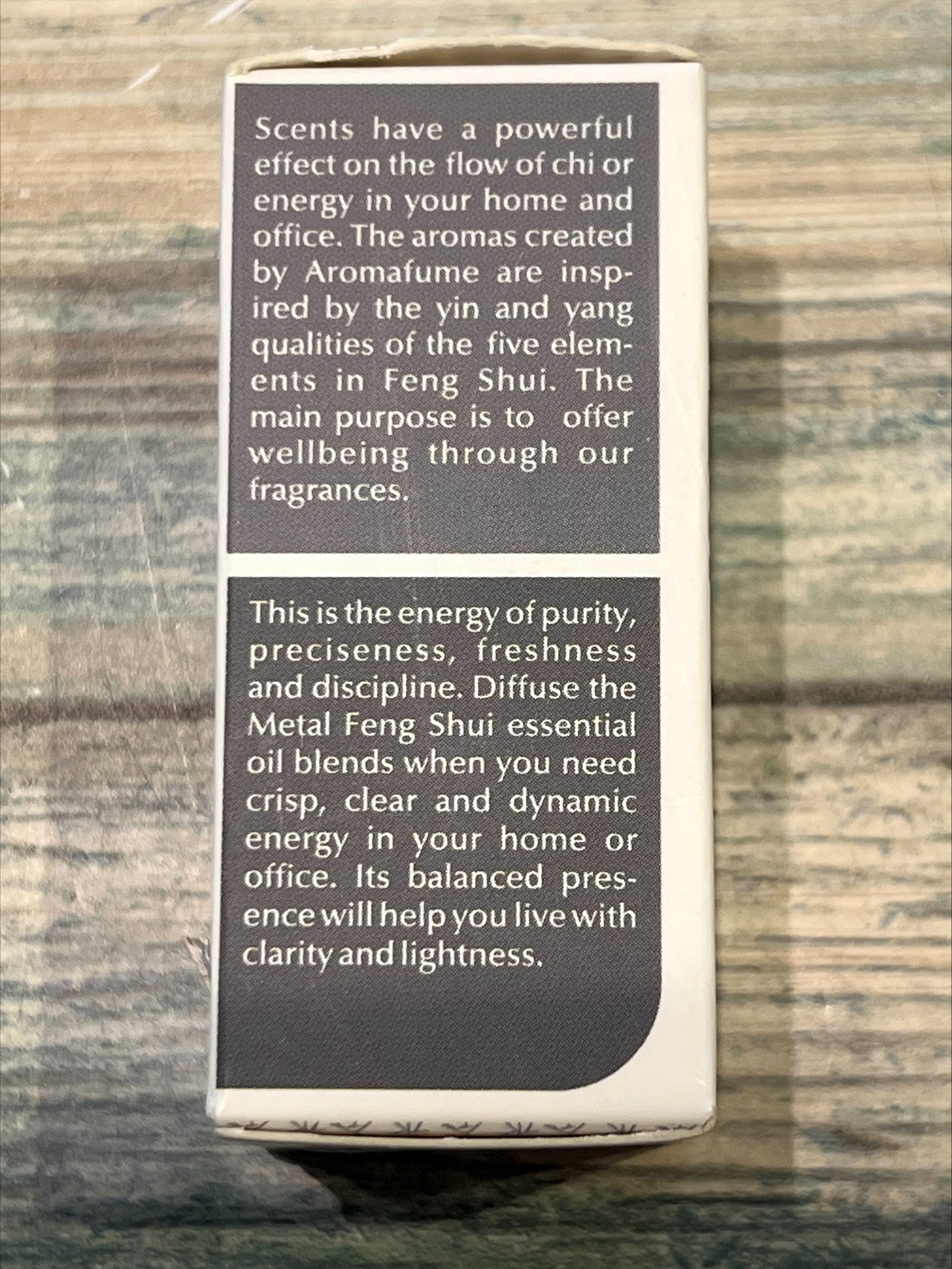 This is the energy of purity, preciseness, freshness and discipline. Diffuse the Metal Feng Shui blends when you need crisp, clear and dynamic energy in your home or office. It's balanced presence will help you live with clarity and lightness