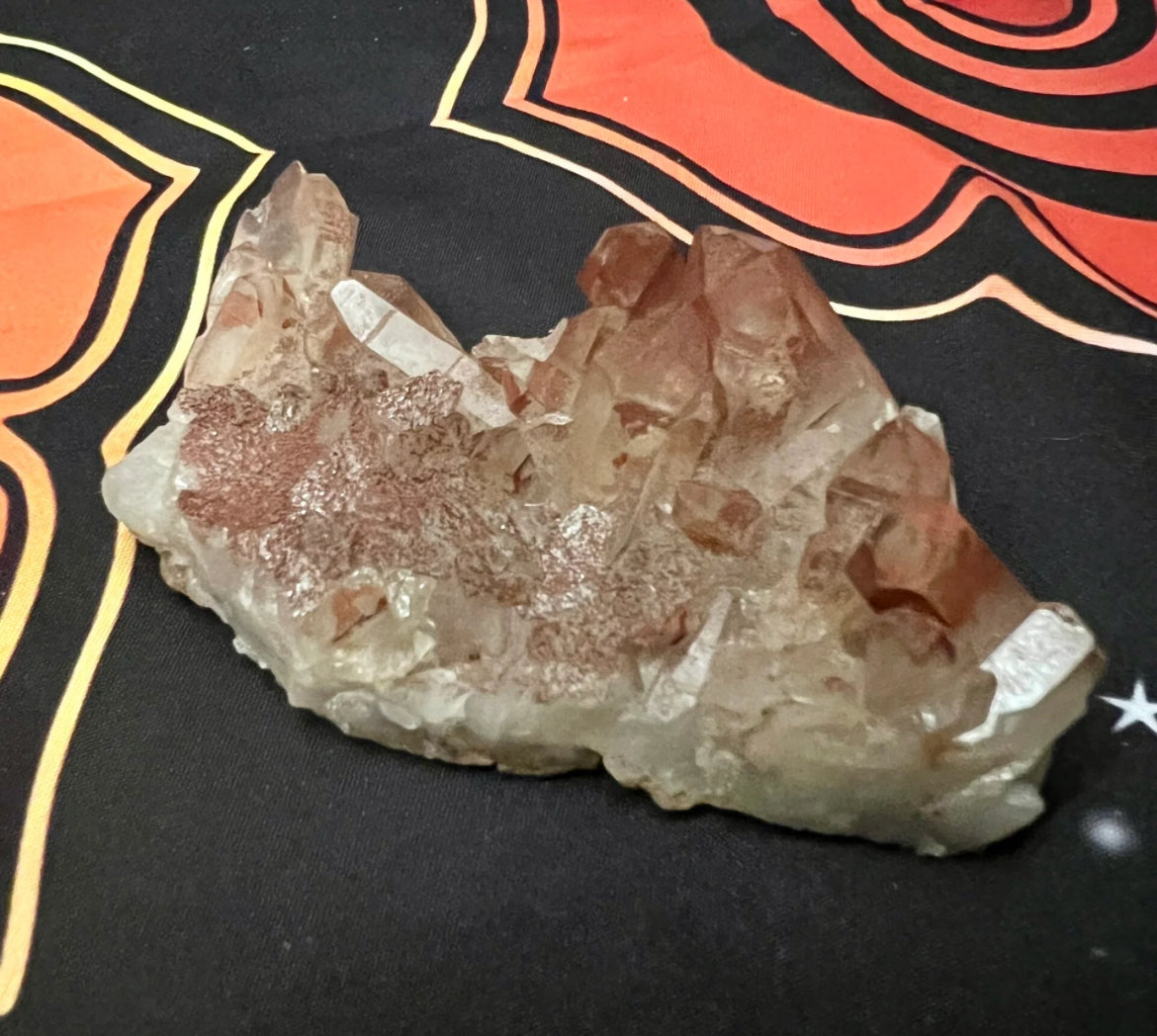This gorgeous red color quartz comes from Hematite and when held to the light, the color just seems to deepen and darken, like a glowing fire within.Red Quartz is said to be a good talisman crystal for business, as it enhances financial security, supports perseverance, helps to overcome impatience and frustration. In healing, Red Quartz supports formation of red blood cells, circulatory problems, and anemia and may be used for energy enhancement.Red Quartz offers an energy that at first, may feel rugged, extreme and “in your face”. A raw form of Earth's essence, this coated Quartz embodies pure life, fortitude and protection. Life force energy is the essential ingredient in one finding their way in this ever confusing world.This crystal is highly protective and seals your aura from any unwanted energies. This makes it a wonderful companion to use during astral travel.