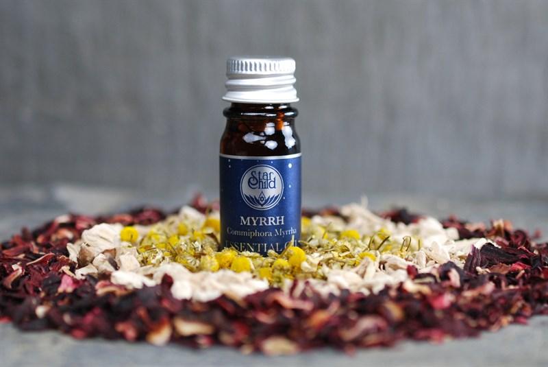 Myrrh is traditionally considered one of the most holy plants and is used for purification and banishing of harmful, negative energies. In particular it protects the souls of the dead on their journey to the Otherworld. Myrrh can be used for funeral rites and may help overcome grief and loss. It can be used for grounding and for connecting with one's inner source at times of crisis.