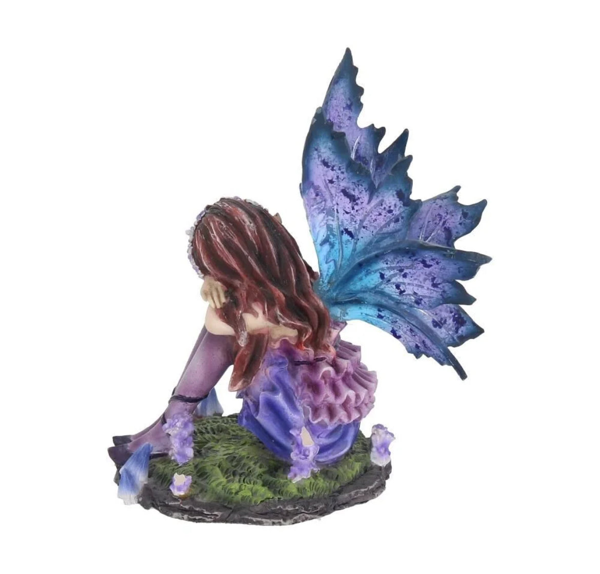 A young fairy sits on the green ground, resting her eyes in the mid-day sun. Her purple dress is decorated in frills and is just enough to cover her modesty. Her long dark hair cascades over her shoulders onto her large wings which take centre stage due to their size and vibrant colour. Cast in the best resin, this figurine is then painstakingly hand-painted to a very high standard. Perfect for any mantlepiece or side table, this piece makes a great gift for anyone who feels the fae magic.