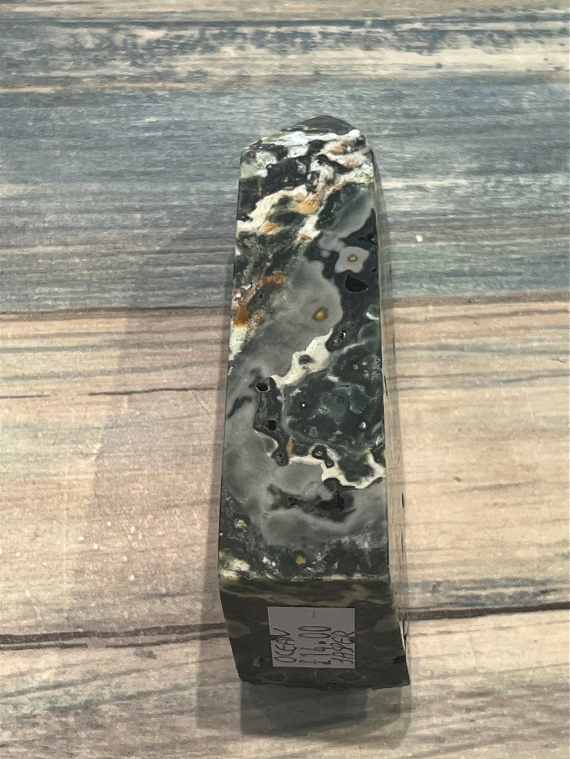 Ocean Jasper's meaning centers on emotional healing, encouraging joy, and facilitating self-love, acceptance, and communication. It brings tranquility and bliss by helping one "go with the flow" of life, similar to the calming effect of the ocean. This quartz member aligns with the solar plexus, heart, and throat chakras, promoting emotional stability, positive self-expression, and the release of past pains. Measures approximately 9cm height, 4cm depth, 2cm width
