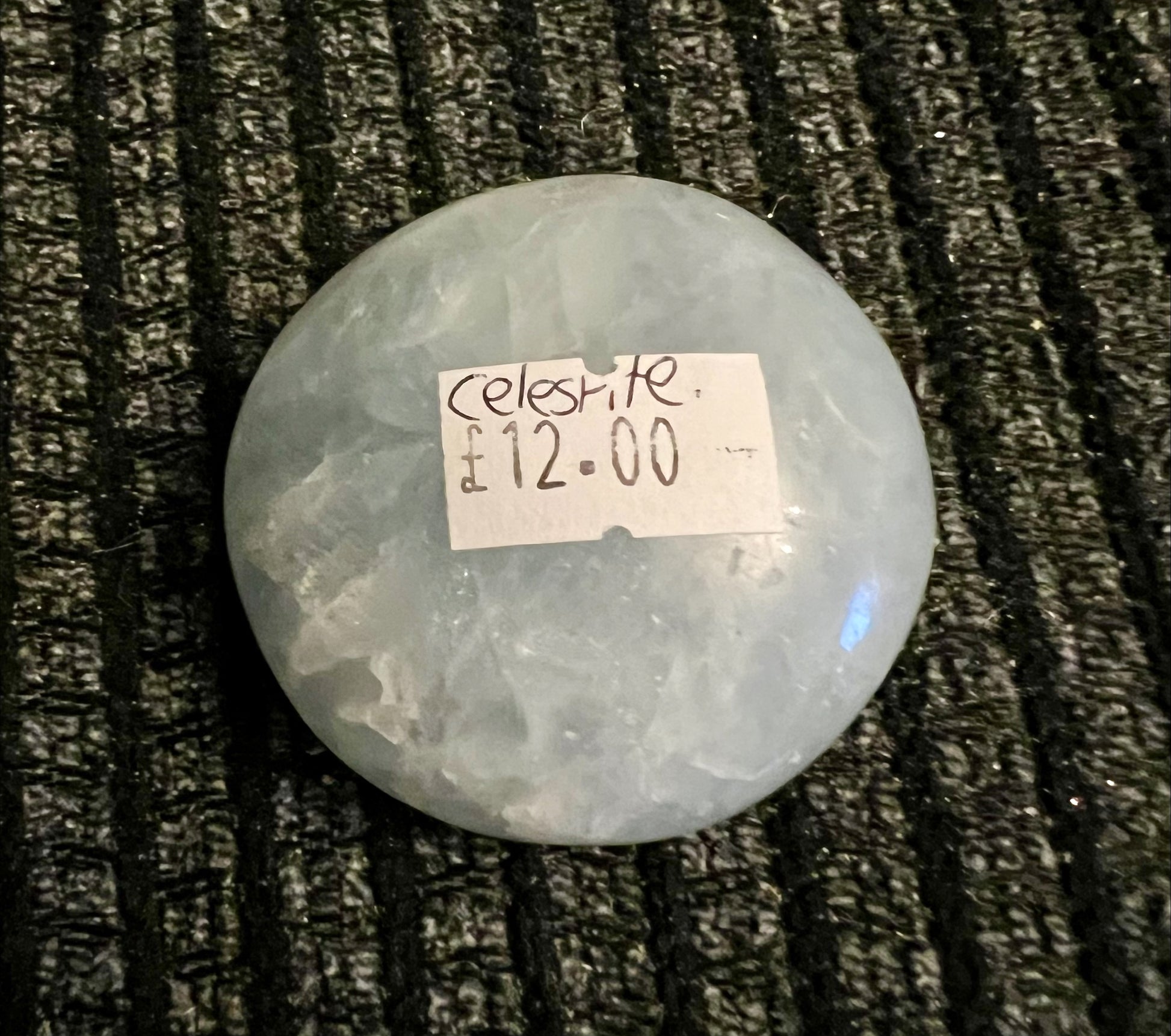 Historically, celestite has been linked to physical rejuvenation and the promotion of serenity. Celestite is believed to stimulate and support the throat, third eye, and crown chakras, promoting overall spiritual detox and a peaceful state of awareness. Hold a piece of celestite during meditation to enhance relaxation and connect with your higher self. Keep celestite crystals near your bed to promote restful sleep and a peaceful atmosphere. Wearing celestite as jewelry can provide a constant source of its calming and uplifting energy. Carry a small piece of celestite with you throughout the day to access its calming energy when needed. Weight 76g Approximately 5cm .