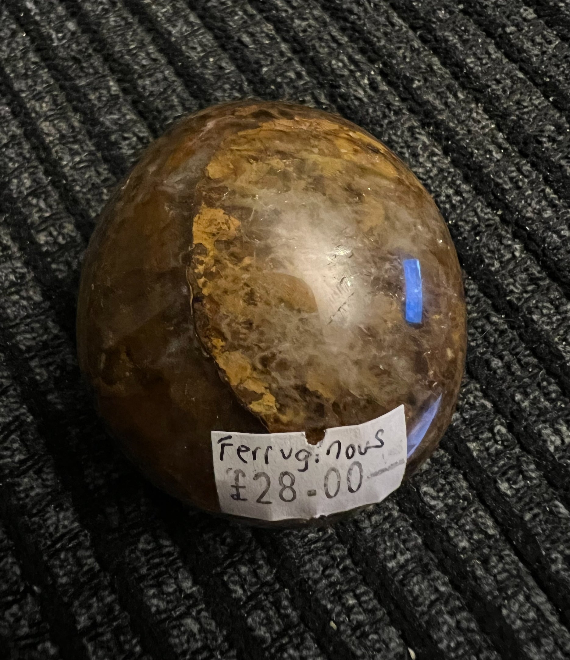 The simplest way to work with your palm stone is to do exactly what its name implies, hold it in your hand. Just by holding a palm stone in your hand, you can connect with the energy of the crystal and reconnect with your intentions for the day.A brown ferruginous crystal, characterized by iron oxide inclusions, is also known as red hematoid quartz, fire quartz, or ferruginous quartz. This name refers to the presence of hematite (an iron oxide mineral) within the quartz crystal, giving it a reddish-brown hue. This term is another common name for the same type of quartz, highlighting the fiery, reddish-brown color.