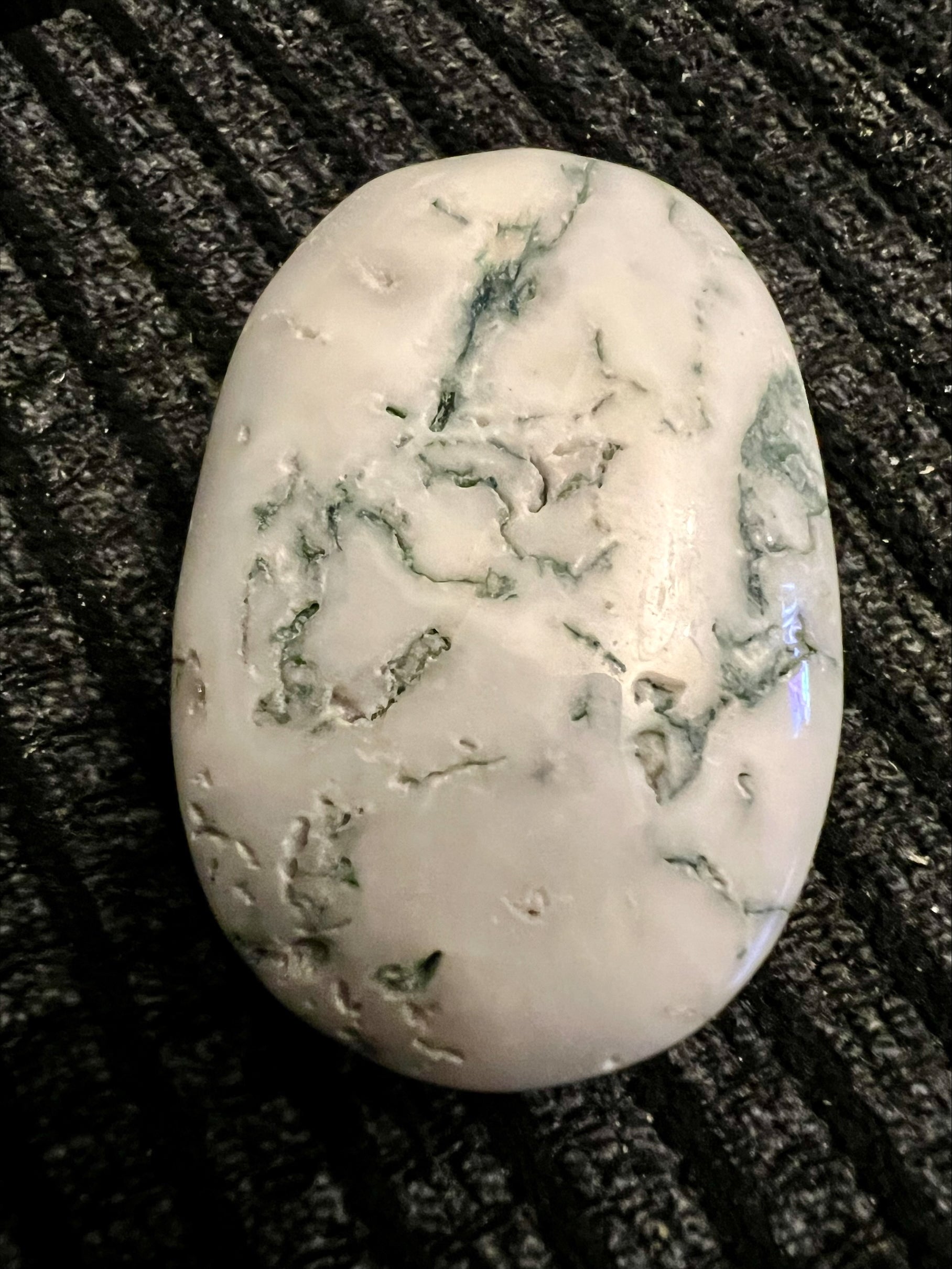 Moss agate is thought to strengthen the immune system and improve overall health and vitality. It's believed to support the body's healing processes and aid in recovery from illnesses and injuries. Moss agate is said to enhance physical endurance and stamina. It is believed to have anti-inflammatory properties that can help soothe aches and pains. Some believe it aids in regulating the circulatory system, promoting healthy blood flow and heart function. Some sources suggest it can help with infections, colds, flu, and fevers. Moss agate is believed to balance emotions, releasing fear and stress. It's said to promote self-expression and communication. Moss agate is believed to encourage trust and hope. It is said to help reduce stress and promote relaxation. Moss Agate inspires new ideals after periods of stagnation Moss Agate helps enhance a good self-image and fortifies positive character traits.