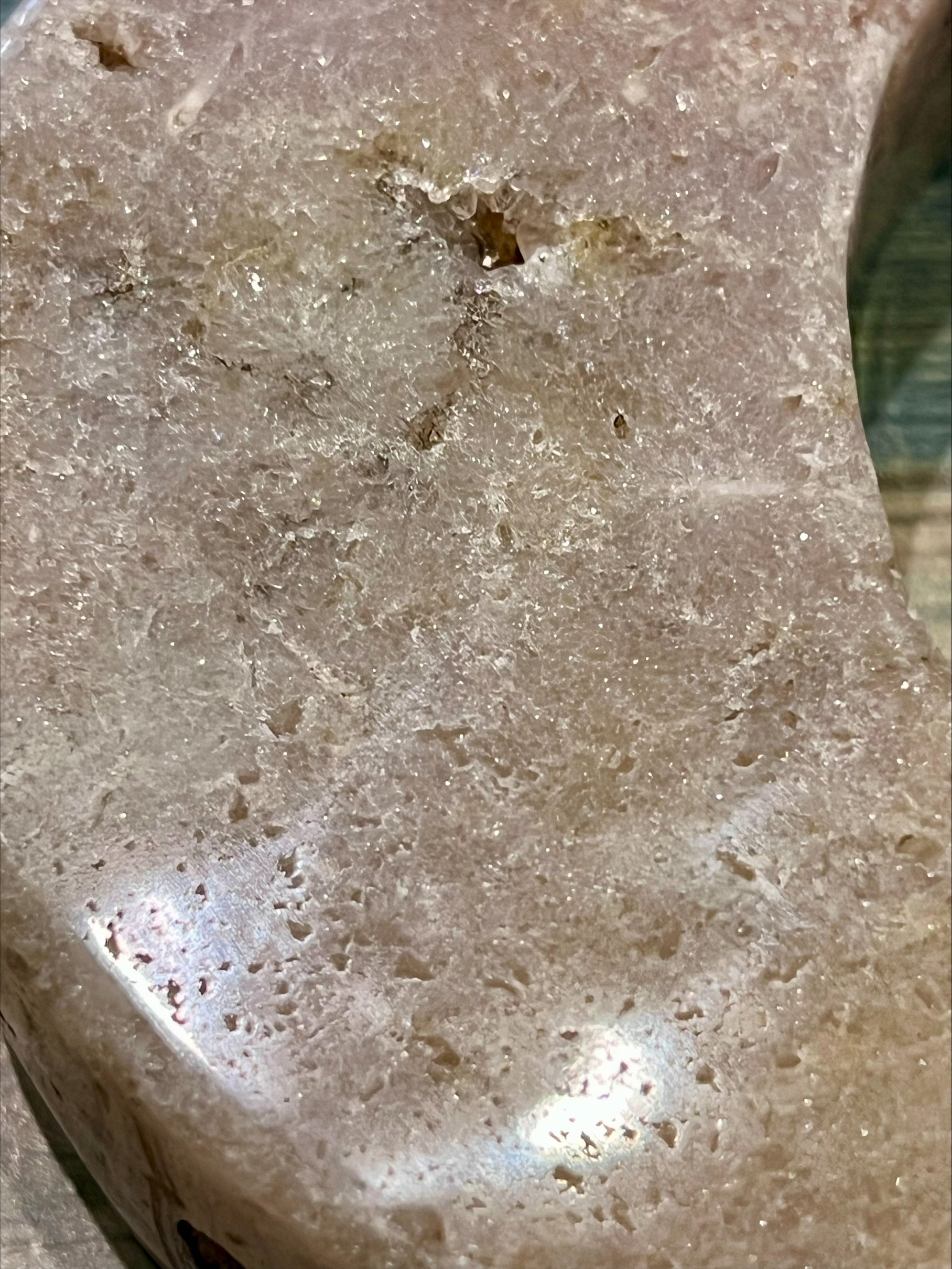 The soft, feminine energy of Pink Amethyst helps to soothe and calm the mind and emotions. It is a stone of universal love, offering compassion and forgiveness. It can help attract a soul mate or twin flame relationship. It also helps with self-love, increasing self-esteem and self-worth.