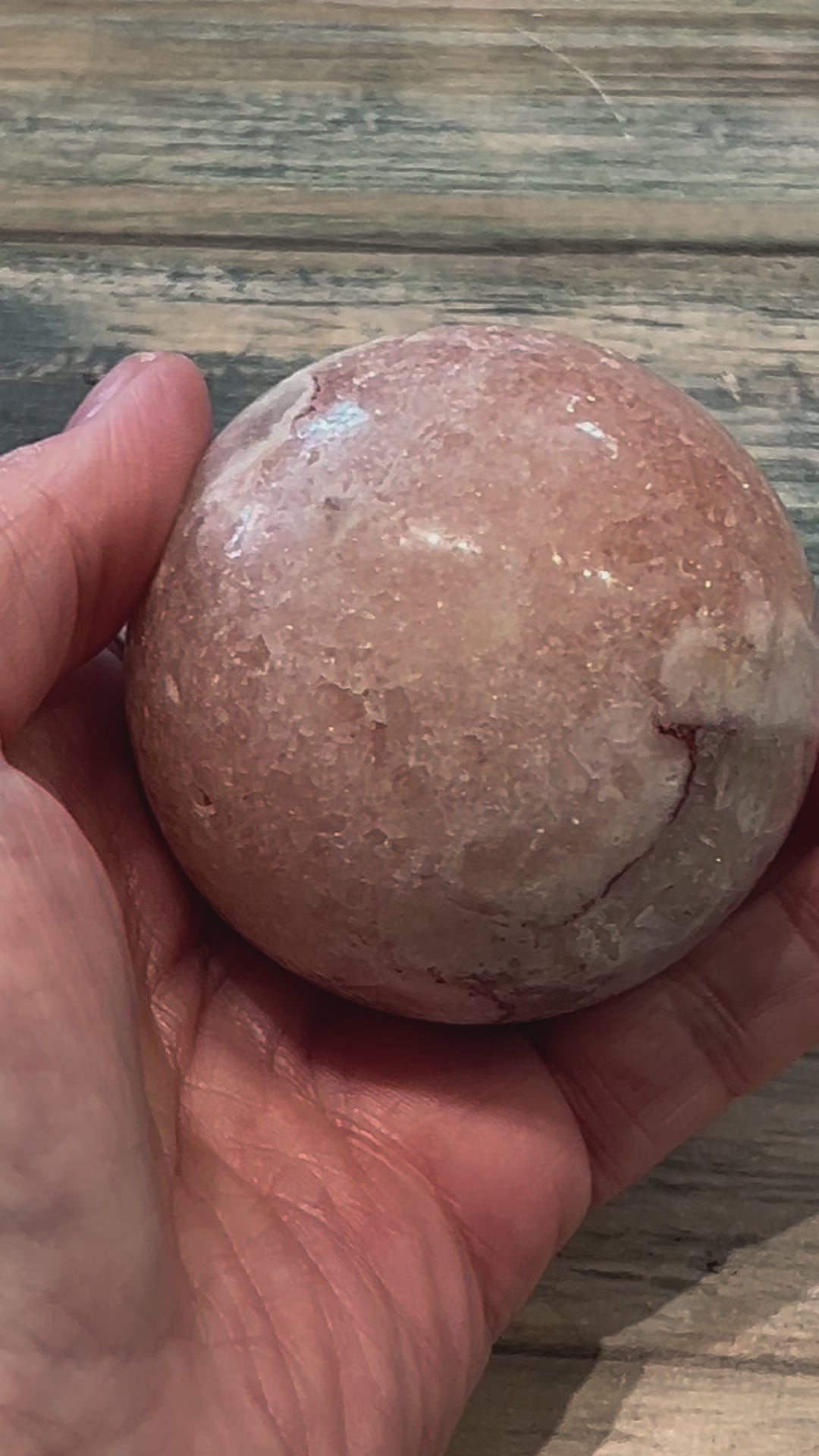 Pink Amethyst opens the heart chakra for giving and receiving love and friendships. The crystal promotes a positive self-image, body image, self-esteem, self-love and empowerment. The stone connects the heart and crown chakra to encourage your life to be spiritual. Approximately 6.6cm diameter and 284g