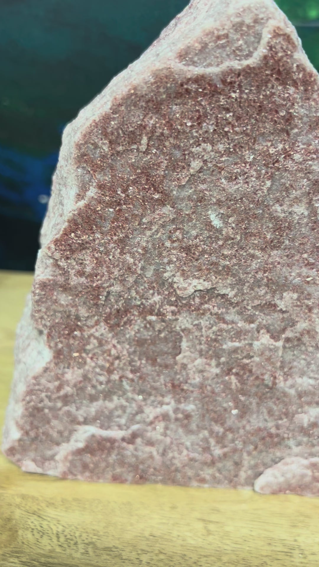 Here you get both the heart-opening Fuchsite and the calming Lepidolite all in one piece. Lepidolite is known to radiate calm, security and a sense of well-being. It strengthens you to stand strong in yourself and helps you achieve inner balance.