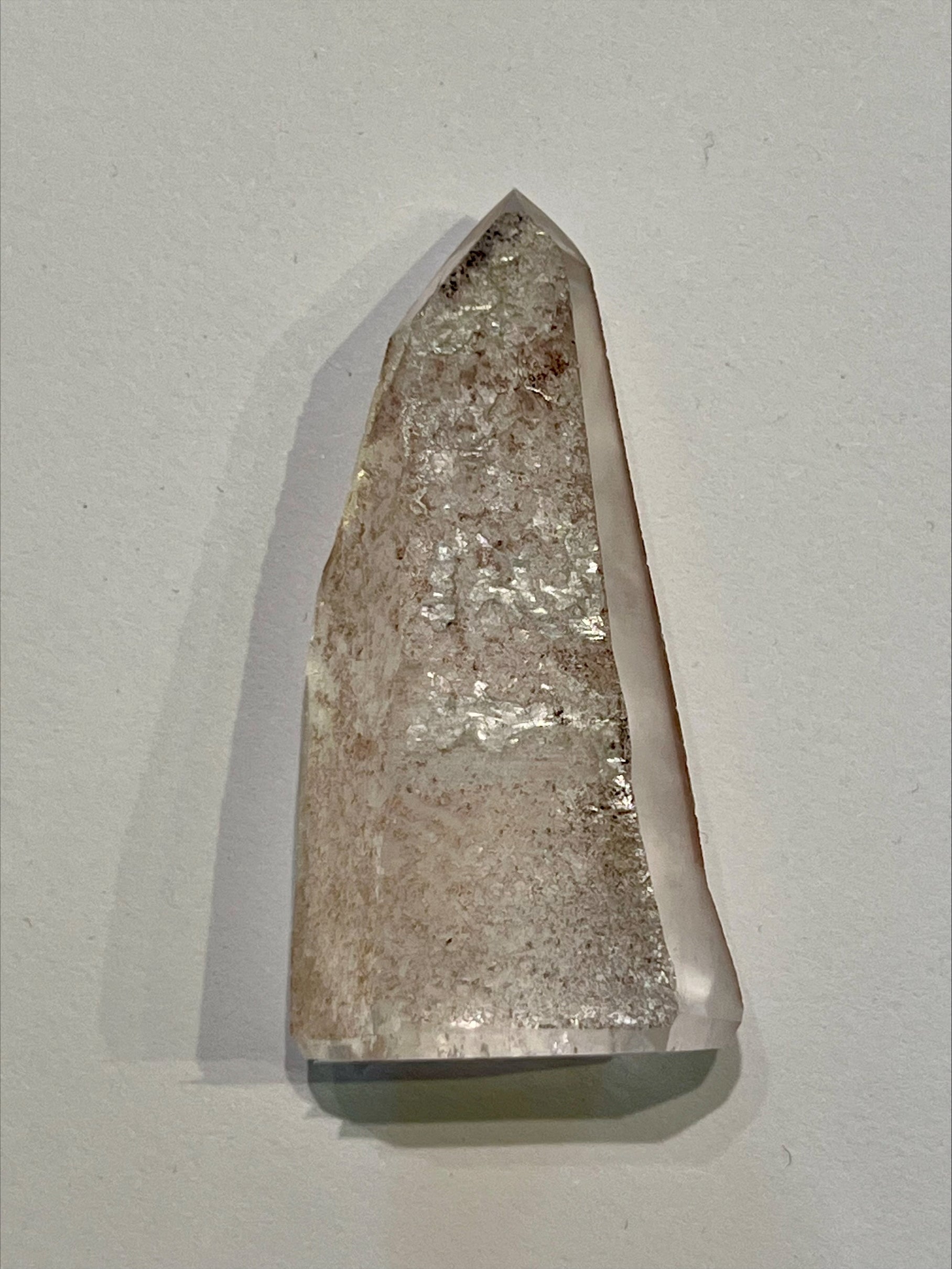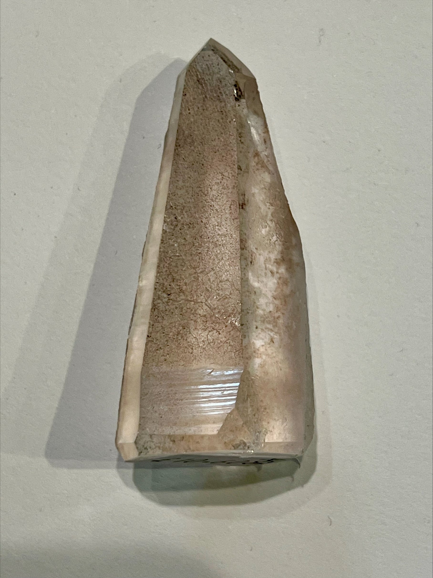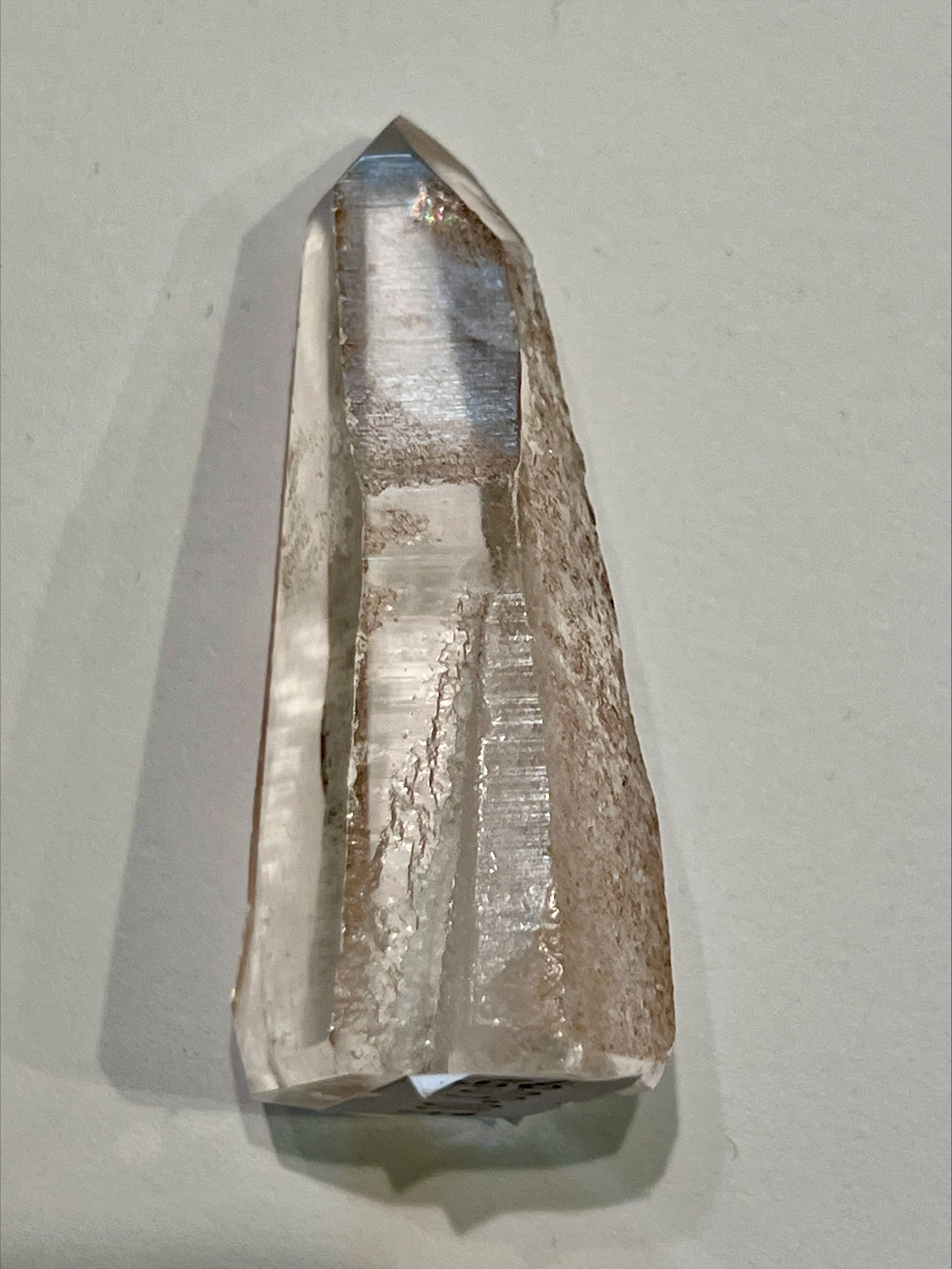 Pink Lemurian Quartz is a very rare, VERY high vibrational crystal. Regular quartz is often clear or milky white and can have various inclusions. Lemurian Quartz has a unique appearance with horizontal striations or a barcode appearance along its sides. This is the main factor in distinguishing between the two.