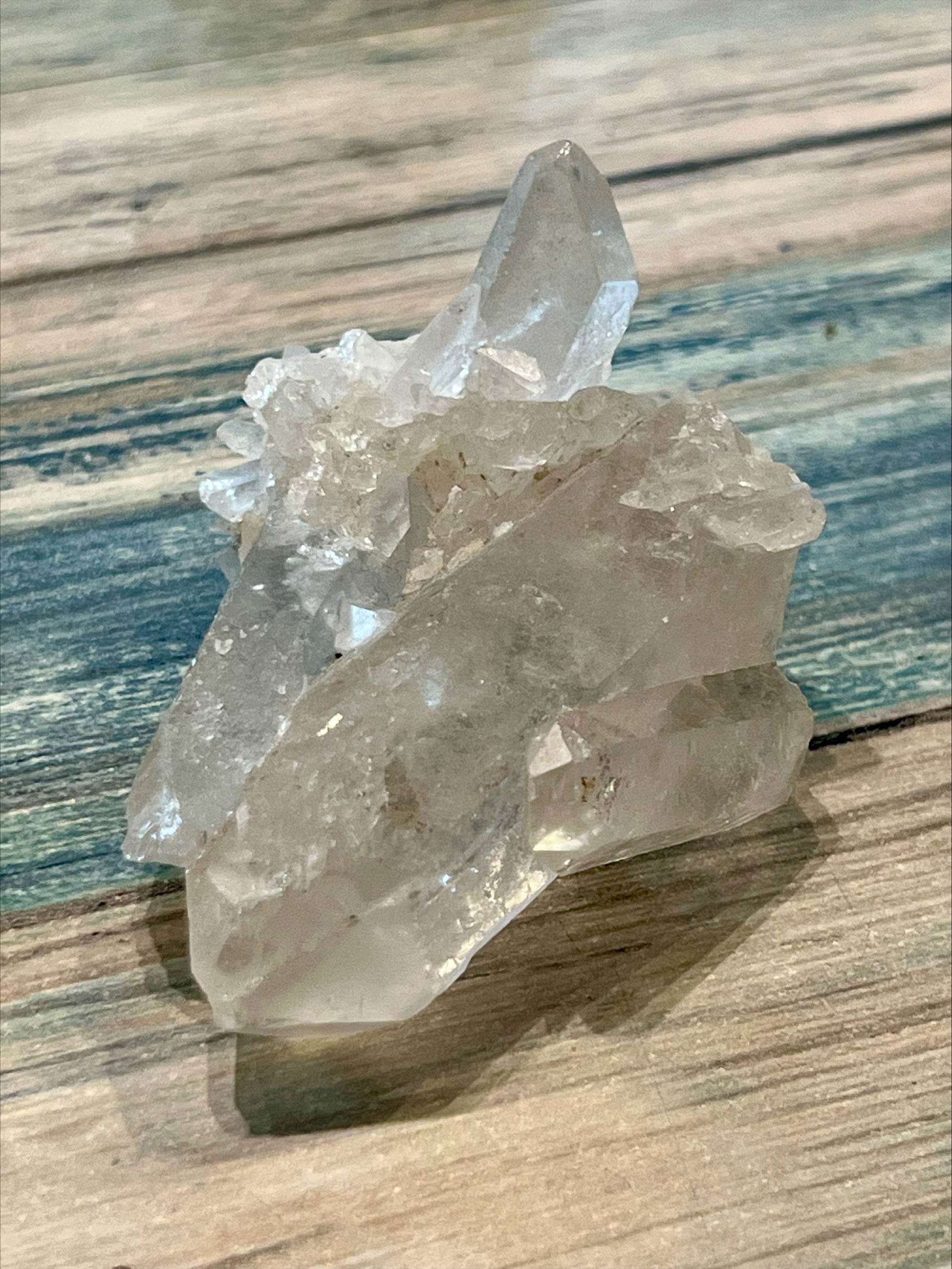 Clear Quartz absorbs, stores, releases, and regulates energy. It draws off negative energy of all kinds, neutralising background radiation, including electromagnetic smog or petrochemical emanations. It balances and revitalises the physical, mental, emotional and spiritual planes. Approximately 7cm length, 5.5cm width, 2.5cm depth