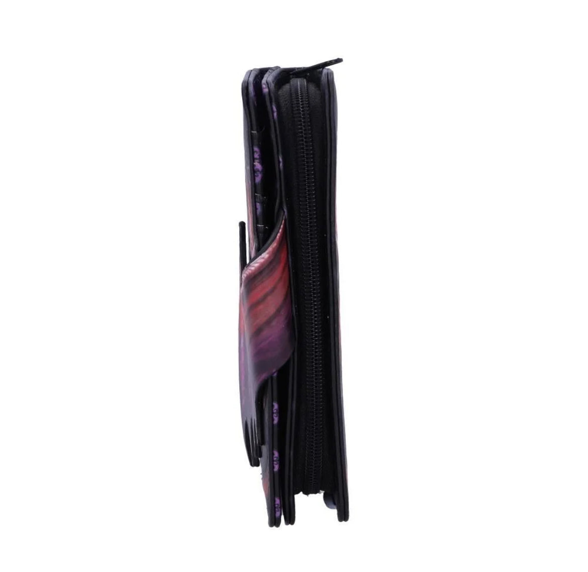 There is a vast collection of myths and legions around dragons, they have been known to be dangerous but also guardians of valuable treasures. This quality purse has the profile of a stunning red dragon, whose wings then wrap round and secure the purse with a clasp. The dragon guards numerous card slots and a zipped compartment.