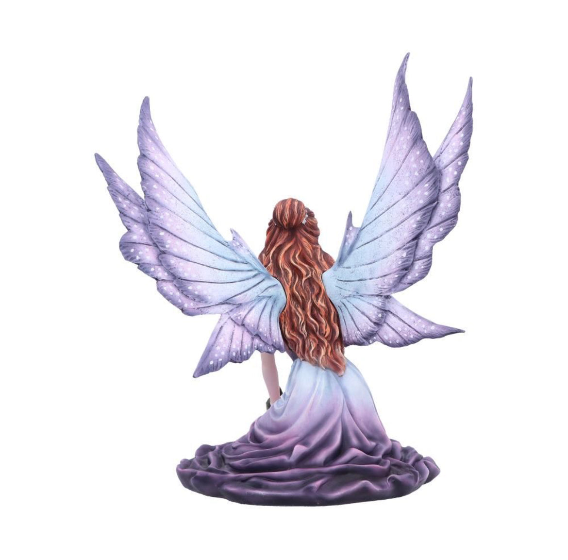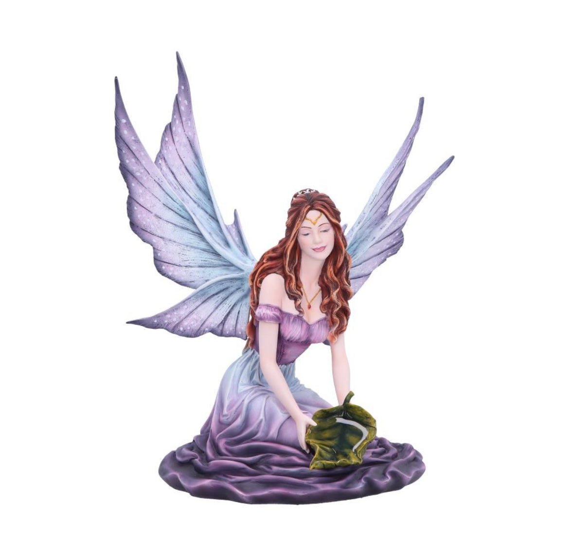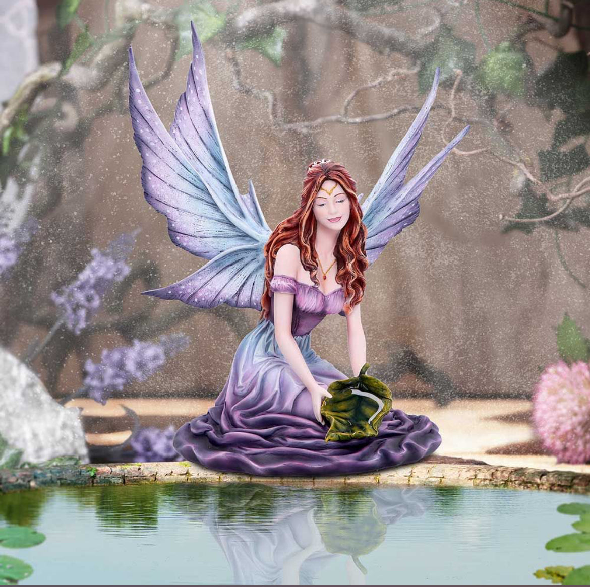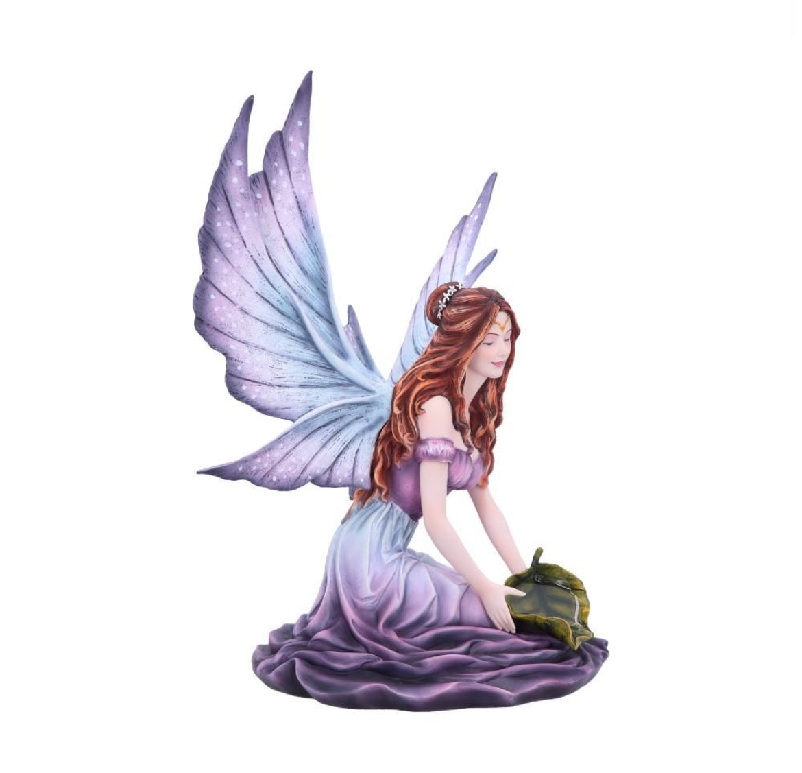 This stunning fairy figurine, with detachable wings will make the perfect centrepiece in any room. Seen kneeling down, holding onto a large leaf which has gathered water within. Whilst beautiful purple colours engulf her and her buterfly like wings, which are spread open ready for flight. Cast in high-quality resin before being expertly hand-painted, this piece is perfect for any lover of fantasy or fairies.