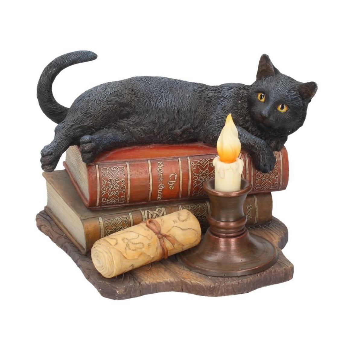 Immortalised in resin by Nemesis Now, this Fantasy figurine comes from the magical imagination of the talented Lisa Parker. Resting on some leather-bound occult books on top of a section of wooden table, this black cat reclines, tail curled up inquisitively as it looks up at you. A curled scroll lies on the table next to a candlestick, almost burnt down to the nub, the flickering flame burning merrily. Lisa Parker's imagination brings this piece to life, giving any space the air of mystical study. This piece is the perfect gift for any studious budding magician, or for those who wish to bring a touch of magic to their study.