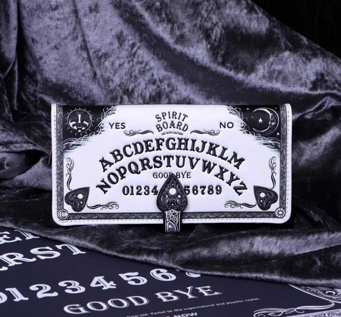 This classic spirit board design purse is made to a very high standard, with numerous slots for cards, notes and a zipped compartment for coins. Spirit boards have for a long time been one of the most powerful occult tools there is and are the inspiration behind this incredibly detailed purse. Featuring a planchette, alongside the number 0-9 are the words yes and no. The beautiful embossed detailing enhances the magic of this purse.
