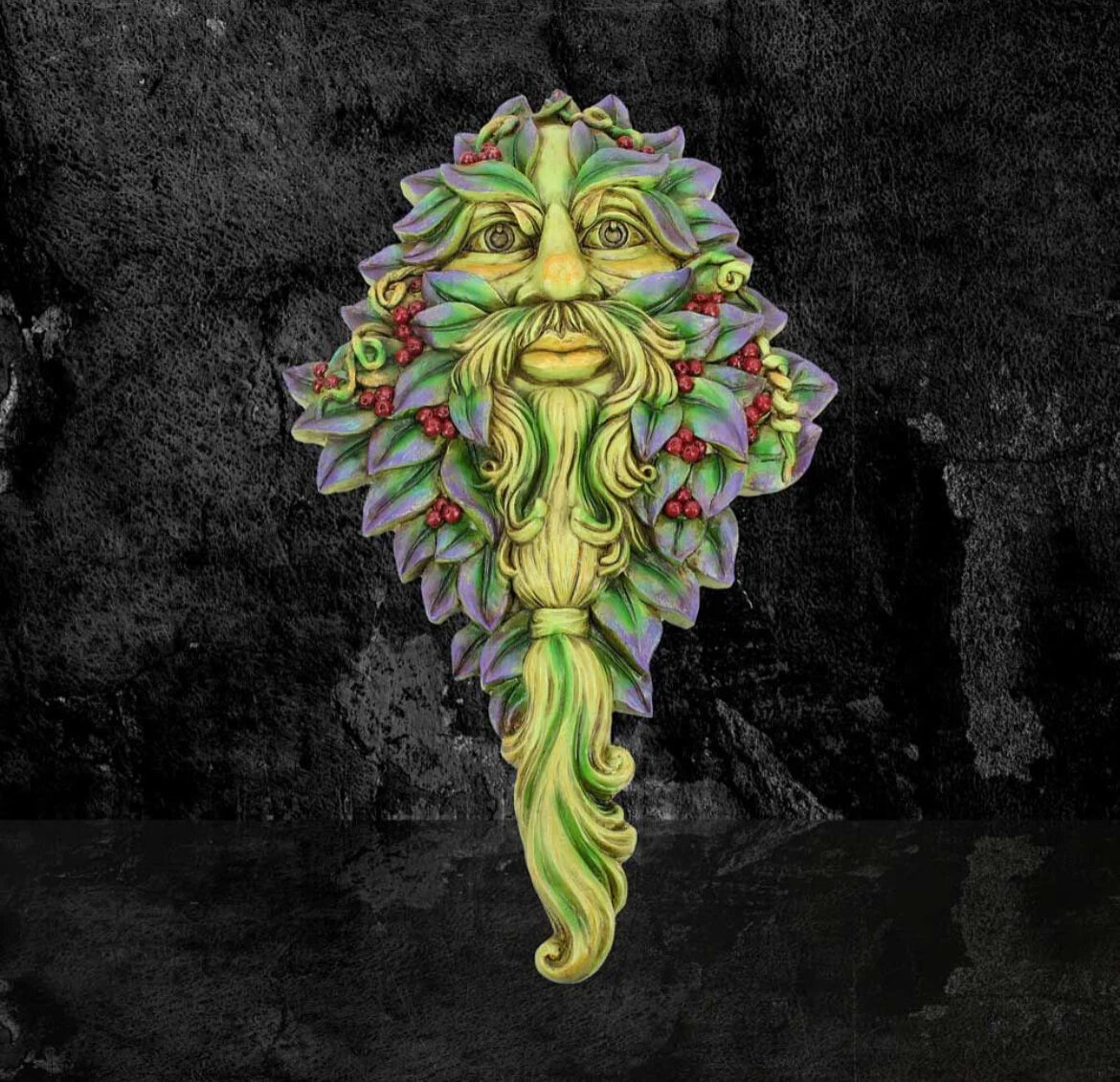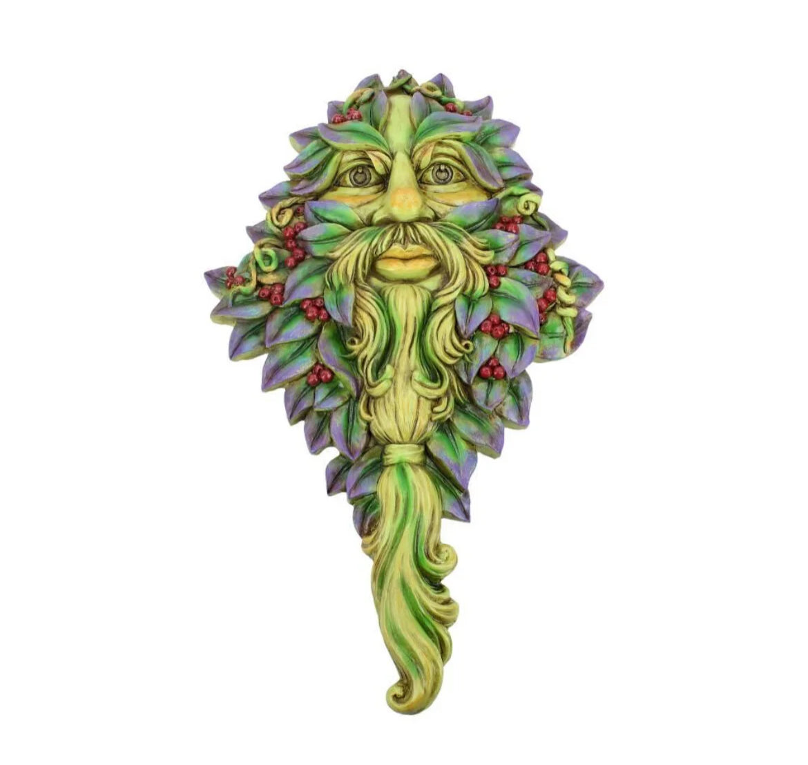 Show your love for ancient shepherds of the forest with this wall mounted tree spirit plaque. His cheery face is formed from fresh, green leaves, edged in a deep lilac, as twisted vines curl to create his long beard. Small red berries peek from behind the leaves, scattering over his face. Cast in high-quality resin before being painstakingly hand-painted, this piece will bring nature, magic and mystery into any home.